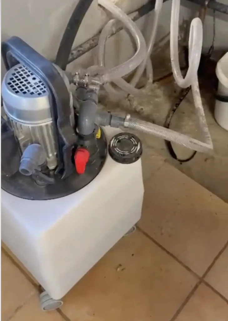 Primero conectamos una máquina recirculadora al circuito de calefacción.
